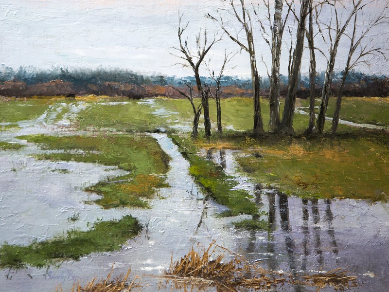 A Good Day After All SOLD (18×12 dry pastel). Travelling ochre-colored rolling hills of eastern Oregon, it seemed we had the entire world to ourselves. It was kind of exciting to see another vehicle on the road! We past this fella and his dog and I turned around to snap a photo of the two of them and realized they were talking. Cute.